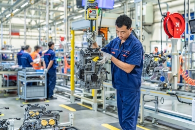 Naše ďalšie kroky smerujú do motorárne, kde sa frézujú a skladajú všetky komponenty motora. Je tu aj patričný hluk od všetkých tých strojov a vôňa oleja, ktorý sa používa pri frézovaní kovu. Tu už väčšinou na jednotlivých stanovištiach skladá súčiastky jedna osoba, no po každom stanovišti je jeden kontrolór, aby ešte skontroloval zmontované súčiastky. Ročne sa tu vyrobí cez 400 000 motorov.